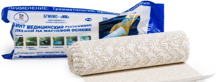 Бинты представляют собой полосы медицинской марли пропитанной высококачественным медицинским гипсом. Равномерно распределенный на марле гипс закреплен бактериостатическим материалом индифферентным к организму.