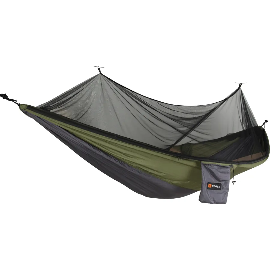 Легкий и прочный гамак из парашютного шелка с москитной сеткой на молнии.