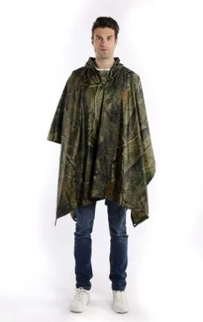 Плащ пончо, водонепроницаемый. Один взрослый размер. Туризм, охота, рыбалка, фото, наблюдение. Легкий, всего 630 грамм. Компактный в сложенном виде 31*23*3 см, толщина ткани 0.18мм. Цвет: камуфляж лето. Материал: быстросохнущий полиэстер.